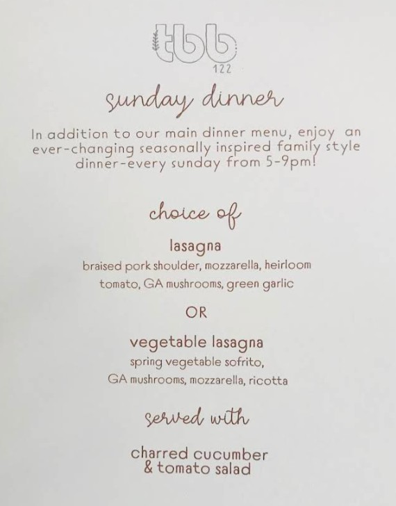 At TBB 122, we offer a delightful mix of fresh, flavorful dishes in a relaxed and welcoming setting. Located in Alpharetta, GA, our restaurant menu features an array of delicious options, including fresh salads, savory mains, and delectable sides. Whether you're looking for a casual meal with friends or a special dining experience, TBB 122 is the perfect spot for any occasion. Come enjoy our carefully crafted menu and experience the warm, inviting atmosphere that makes us a local favorite. Join us today for a memorable meal!